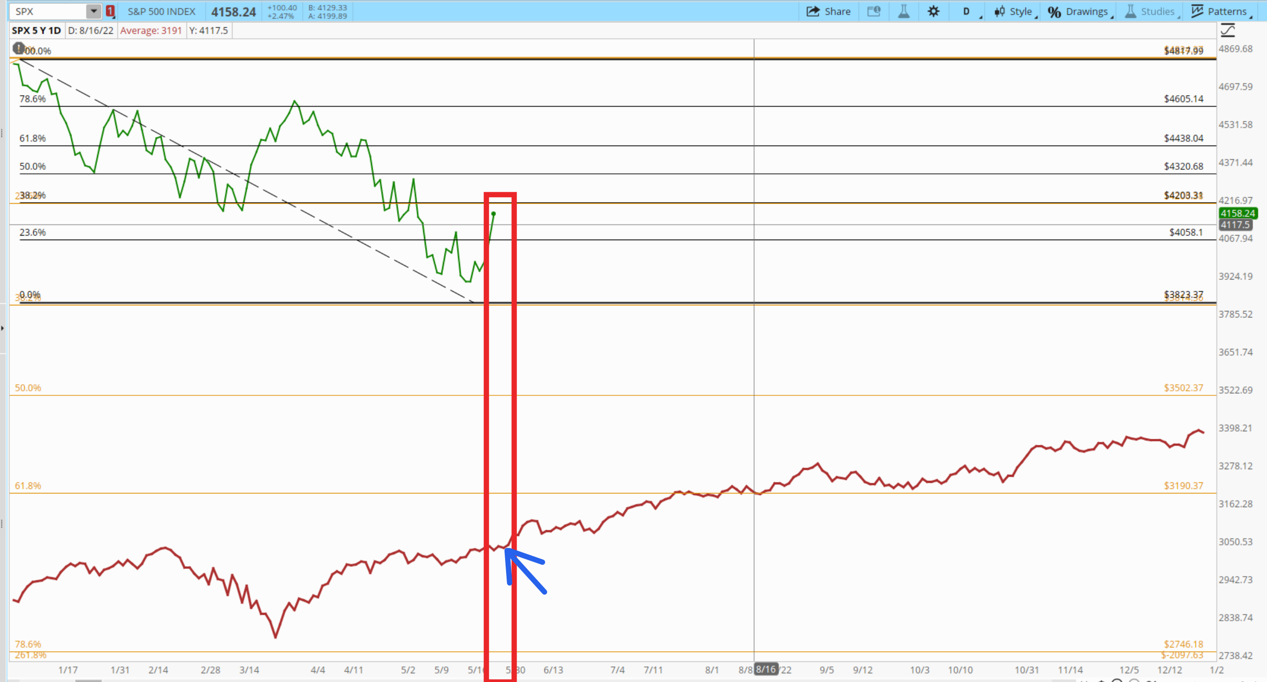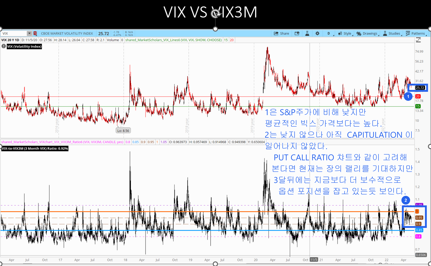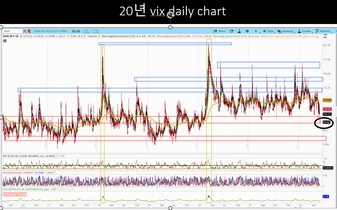 현재 빅스의 수치와 vvix, 풋콜 ratio 그리고 히스토리칼 빅스의 수치를 고려해 볼때 장은 랠리를 이어나가 피보 50까지의 반등후