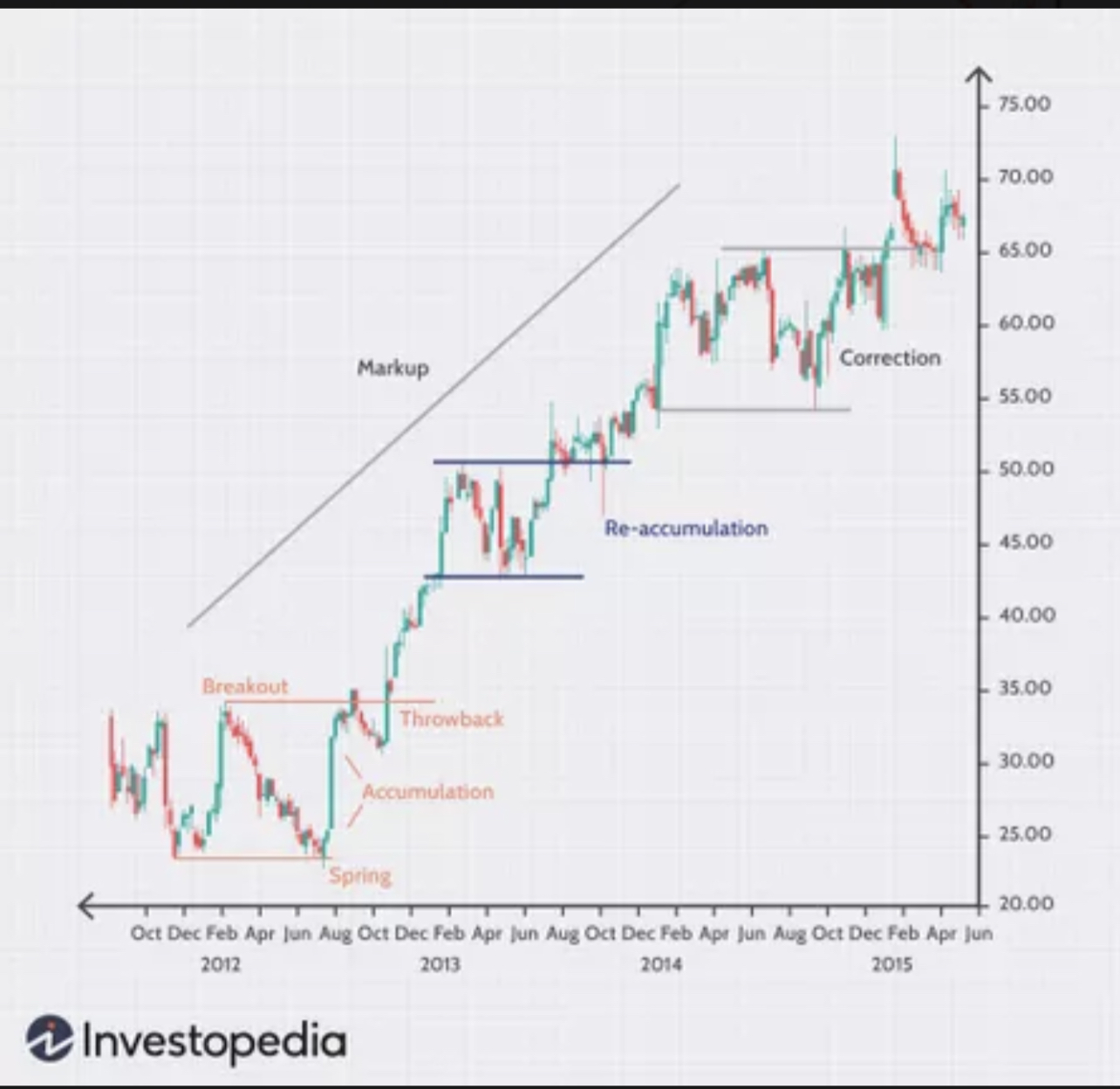 1. The accumulation phase - 아무도 원하지 않을때 주식을 산다.