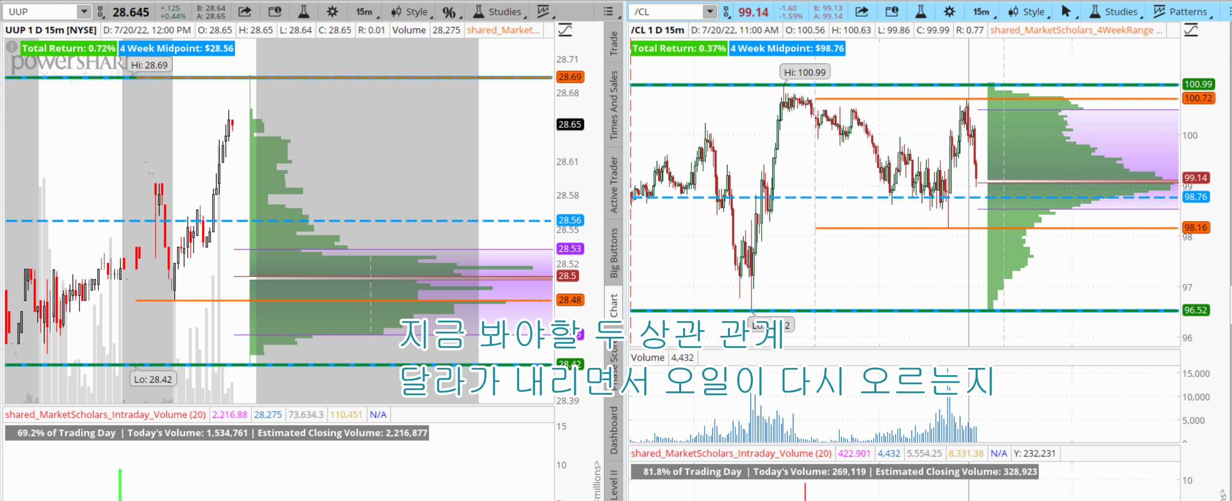 오늘 달라가 오르면서 오일이 내렸음 이제 단기로는 오일이 지지를 받을 수 있는자리