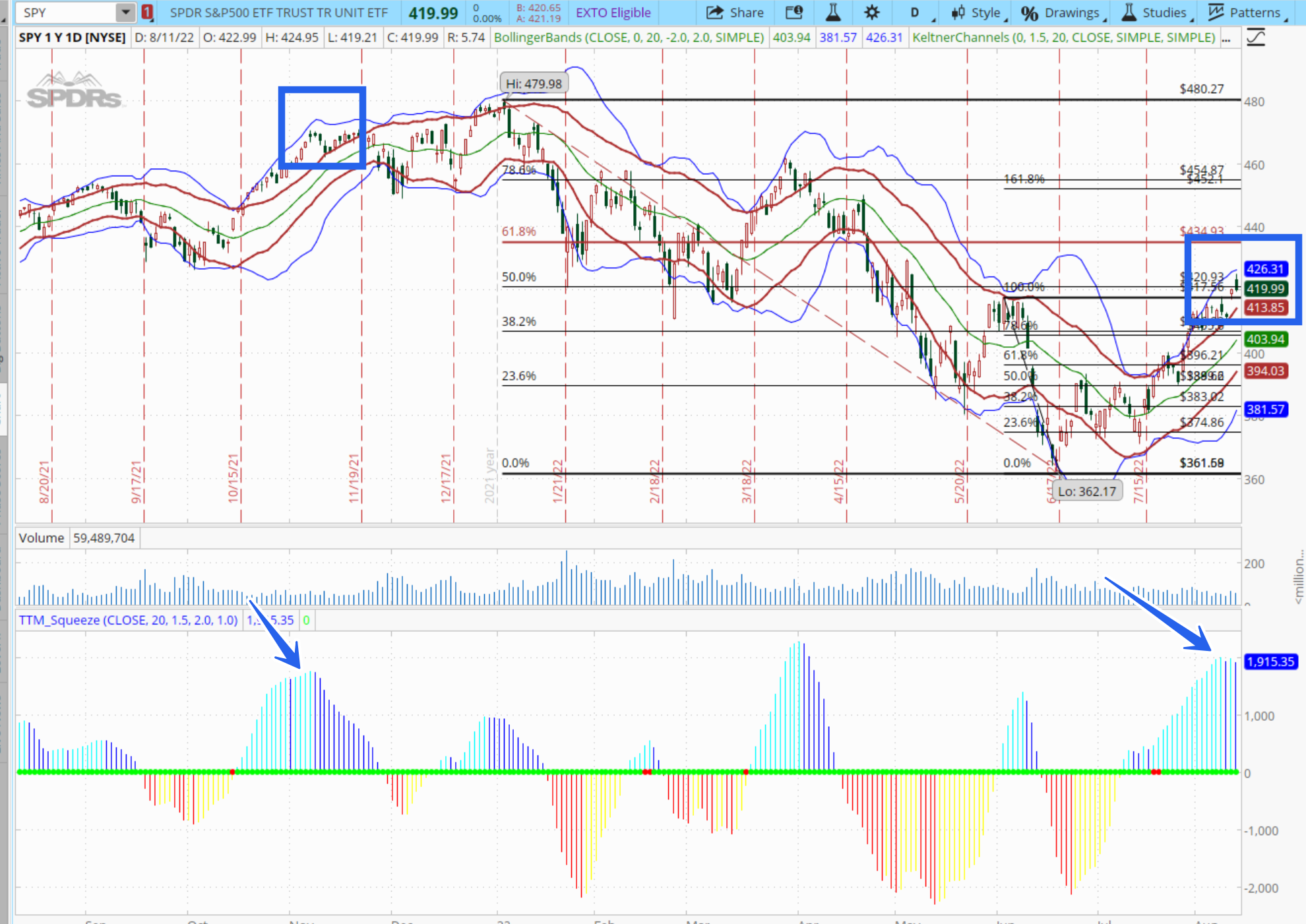 이번 조정은 시작하면서 풀백의 라인이 지나면서 부터 주봉 200선 까지의 조정이라고 봤고 6월 저점에서 상승 하면서 SPY 기준 420까지는 상승을 할거라고 예측을 했었습니다. 그럼 이제 뭘 봐야하나.. 참 햇갈리는 자리가 아닐수 없습니다.