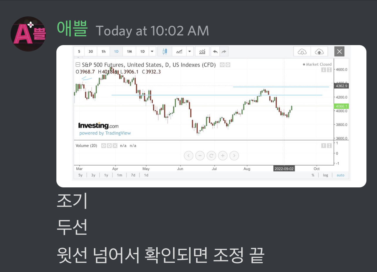 9월 10월 저점 확인후 반등.. 그리고 연말 혹은 연초.. 많이 오른 금리가 반영된 어닝들이 부정적인 가이던스와 함께 큰 부담을 주는 챠트가 오지 싶어요.