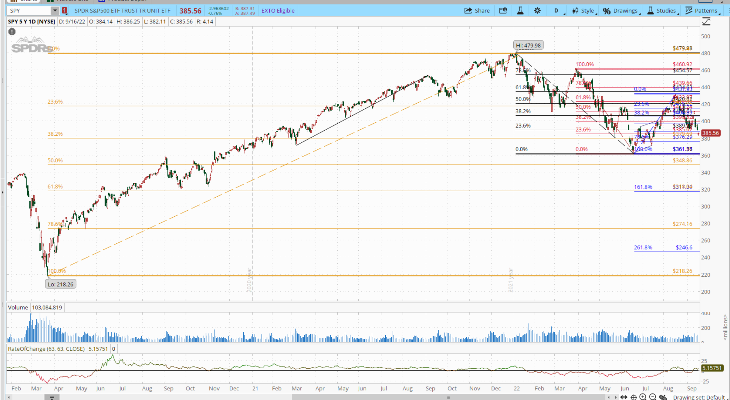 SPY - 피보 2020 부터 상승, 올타임하이부터 다운 RETRACEMENT, 한번 추세가 바뀔수 있었던 지점서 부터 그리고 6월 저점부터 이번 고점